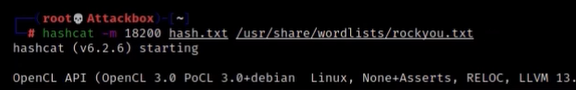 Using Hashcat to crack the hash proves successful. Revealing the users password in plain text.